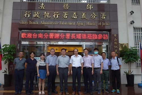 109年8月27日下午台南分署謝分署長耀德偕同主任行政執行官張哲榮、行政執行官劉芷穎、林家禾、劉惠仁、洪國棠、專員羅月秀、辦事員高瑛瑛蒞臨嘉義分署進行行政執行業務參訪,由林分署長及主任行政執行官穆治平與各科室主管接待;並在分署長室進行業務交流。分署長林弘政簡介整體業務概況及行政執行業務之推動重點,並於會中進行工作心得分享與意見交流,參訪行程圓滿結束。